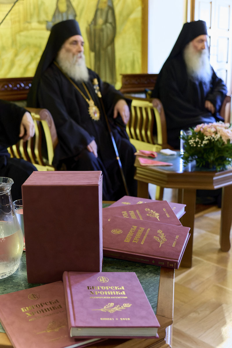 По овој величествен момент, во свечениот манастирски синодикон се одржа торжествената промоцијата на најновото книжевно издание на нашата Обител – петтомното дело „Бигорска хроника – архиерејско петлетие“ – летопис на духовниот живот на нашата монашка заедница и на благодатното служење на нашиот возљубен Старец.
