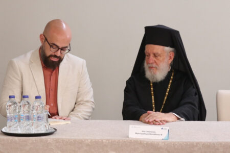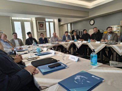 Архимандритот Кирил имаше свое излагање во рамките на третата тематска сесија, насловена Ставот на Црквите кон современите социјални прашања, каде што говореше на тема со наслов: Еден православен одговор на дигиталното доба и современите социо-културни прашања, со посебен акцент на предизвиците кои ги носи брзиот развој на т.н. вештачка интелигенција (AI), односно дигиталните системи базирани на податоци, големите јазични модели (LLM), биоинженерингот, трансхуманизмот и новите форми на виртуелно постоење. Пред учесниците на дискусијата тој го постави прашањето: „Како човекот може да остане личност во светот на алгоритмите и аватарите?“ и пренесувајќи ги размислите на својот старец, Епископот г. Партениј, истакна дека современите дигитални тенденции често тежнеат да го сведат човекот на „корисник“, „профил“ или „сет на податоци“, и на тој начин да ја разбијат неговата онтолошка целосност. Наспрема овие редукционистички модели, Црквата сведочи за човекот како икона Божја, создадена за заедница, за богопричастие и преобразување – не како проект на технологијата, туку како творба повикана кон обожение. Во продолжение, тој стави посебен акцент на православната антропологија, заснована врз воплотувањето Христово, според која човечкото телото не е носител на информации, туку средиште на спасението. Оваа тајна е загрозена во епоха која го одделува телото од искуството и литургиското живеење од личната присутност. „Без тело нема личност; без присутност нема Евхаристија; без Евхаристија – нема вистинска заедница“, подвлече тој. Исто така, тој ја истакна неопходноста од еден обновен аскетизам – не во смисла на бегство од светот, туку како преобразување на секојдневниот живот: пост не само од храна, туку и од врева, од екраните, од дигиталната хиперстимулација. „И во оваа нова епоха, Црквата има што да понуди – внатрешна тишина, молитва, лична присутност и автентичен однос.“
