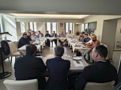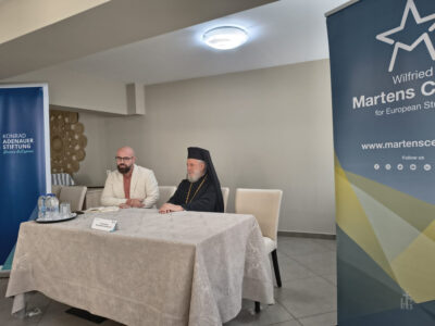 По претходна покана од еминентните организатори – фондацијата Конрад Аденауер (KAS) и Центарот Вилфрид Мартенс за европски студии, Бигорскиот Манастир учествуваше на меѓународната конференција Религиска дипломатија помеѓу Истокот и Западот: улогата на религијата во современите европски процеси, што се одржа од 9 до 12 јули на островот Сирос, Грција. Претставник на манастирот беше нашиот собрат, архимандритот Кирил, кој со благослов на старецот, Неговото Преосвештенство Епископот Антаниски г. Партениј, отпатува во Грција за да го претстави неговиот глас на овој значаен меѓухристијански собир.