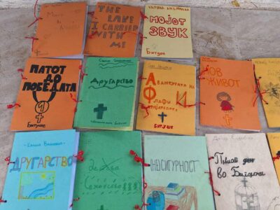 Креативната работилница со наслов „Патот до книгата од идеја до полица“, којашто веќе четири години се реализира како проект на локалната библиотека „Гоце Делчев“, во Велес, беше особено инспиративна за младите. На неа тие се запознаа со процесот на создавање книга, поточно како се раѓа една идеја што создава книга. Беа согледани улогите на лекторот, илустраторот, издавачот и библиотекарот. Реализатори на работилницата беа волонтерите: проф. по книжевност Наташа Брезовска Богоевска како автор, проф. по македонски јазик Павлина Најдова како библиотекар-каталогизатор, проф. по македонски јазик Стефани Андреевска како лектор и одделенските наставнички Снежана Бошевска и Роза Здравковска. Со нивна несебична помош секое дете изработи своја книга, применувајќи ги сите елементи при процесот на создавање книга.