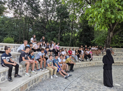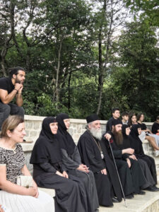Посебна радост претставуваше изведбата на мини претставата, што учесниците ја подготвија водени од актерот Владо Дојчиновски, и ја изведоа на амфитеатарот во скитот, пред бројна публика која пристигна од повеќе места од регионот. Меѓу присутните беше и нашиот возљубен Старец, епископот Антаниски г. Партениј, кој со длабоко внимание го проследи делото и упати искрена благодарност до сите што вложија труд во оваа едукативна и инспиративна драма.